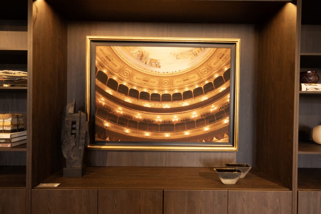 La propuesta se potencia con una pieza central que refuerza el concepto, una fotografía de los palcos del Teatro Colón, realizada por María Azpiroz. Esta obra introduce una dimensión simbólica ligada a la observación, el encuentro y la celebración compartida. De esta manera, el espacio logra amplificar su mensaje: diseñar no solo para habitar, sino también para conectar.