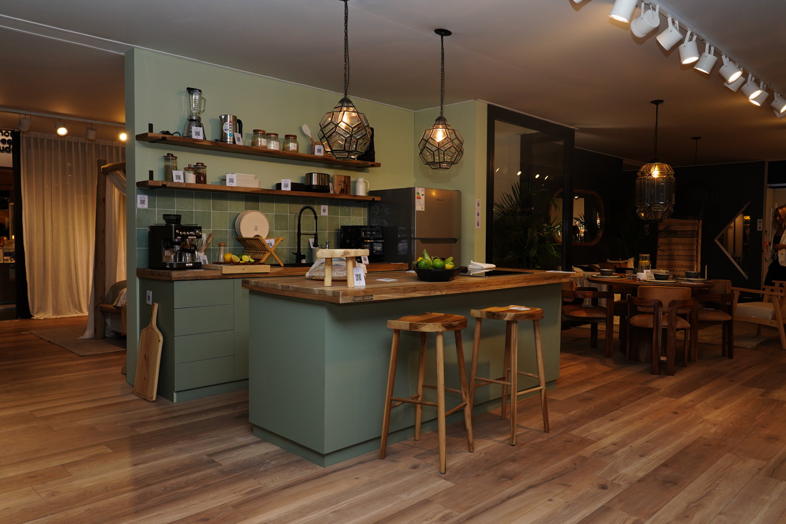 La cocina fue un punto de encuentro entre funcionalidad, estética y tecnología. Santa Brasa deslumbró con la Isla Ardén, realizada en petiribí macizo y equipada con anafe vitrocerámico. Una pieza escultórica que conjuga lujo funcional y nobleza artesanal.