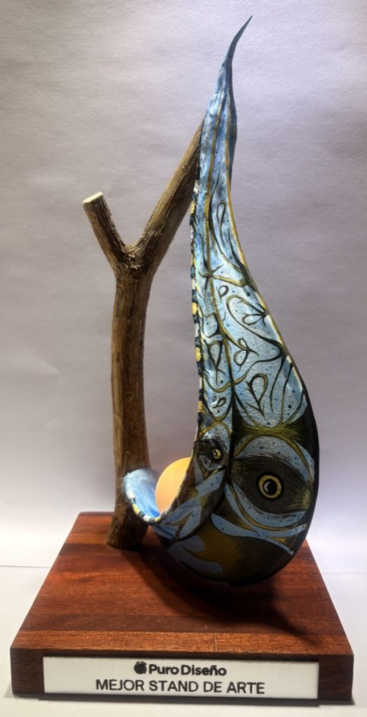 La propuesta combina materiales y procesos locales con una mirada conceptual que además celebra los 25 años de Feria Puro Diseño, integrando la idea de aniversario en su morfología y su espíritu: un diseño que mira al futuro sin olvidar sus raíces.