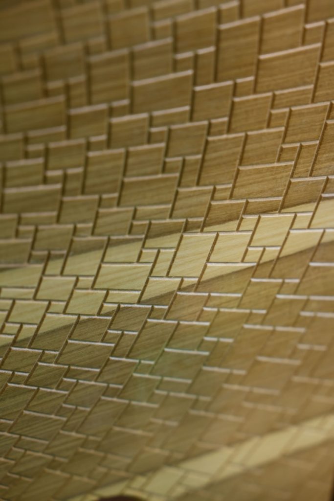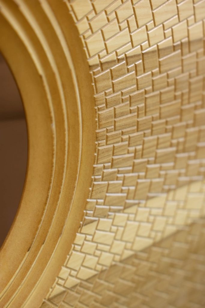 El B1OMB08 de Lucas Martini. Lo que abraza a La Tienda es un biombo que combina tecnología y la naturaleza, grabando patrones con lenguaje geométrico que dialoga con el patrón natural del petiribí. Su autor: Luca Martini, artista y diseñador industrial de Buenos Aires cuya obra fusiona técnicas artesanales y contemporáneas, inspirada en la cultura y la matemática.