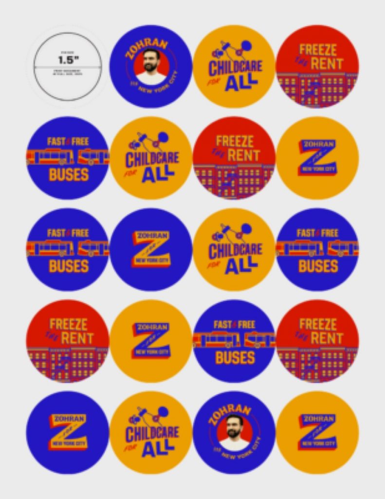 La tipografía, inspirada en los rótulos pintados a mano de las tiendas barriales, transmitió cercanía y autenticidad. “Queríamos una campaña que hablara el idioma visual de la ciudad, no el de la política”, contó Aneesh Bhoopathy, diseñador de la cooperativa Forge, responsable del diseño base. Pero muchos de los ajustes finales —el pulido de colores, la elección de texturas, la dirección del tono gráfico en redes— expresaron la visión de Duwaji.