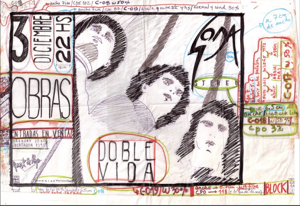 “Estuve durante meses con pinceles, plumas y fibrones hasta dar con el ‘tipito de Soda’, como lo llaman los fans por su simpático perfil humanoide”, cuenta Tite Barbuzza sobre la percepción colectiva de su inolvidable logo de Doble Vida para Soda Stereo.