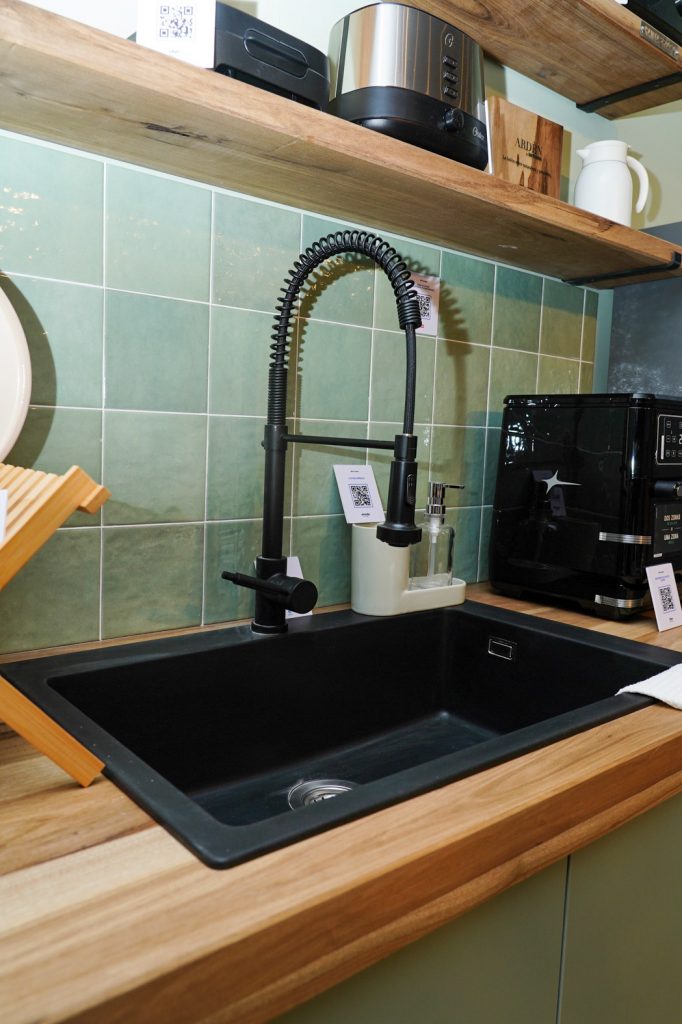 El piso Álamo Oak de Pisos Alemanes aportó innovación, calidad y diseño a la Casa Para Ti Deco: un clásico contemporáneo con vetas y nudos marcados que realzan la esencia natural del espacio. Además, los cerámicos verde claro de la marca acompañaron la cocina con frescura y armonía, integrándose perfectamente con el espíritu verde y la calma del entorno.
